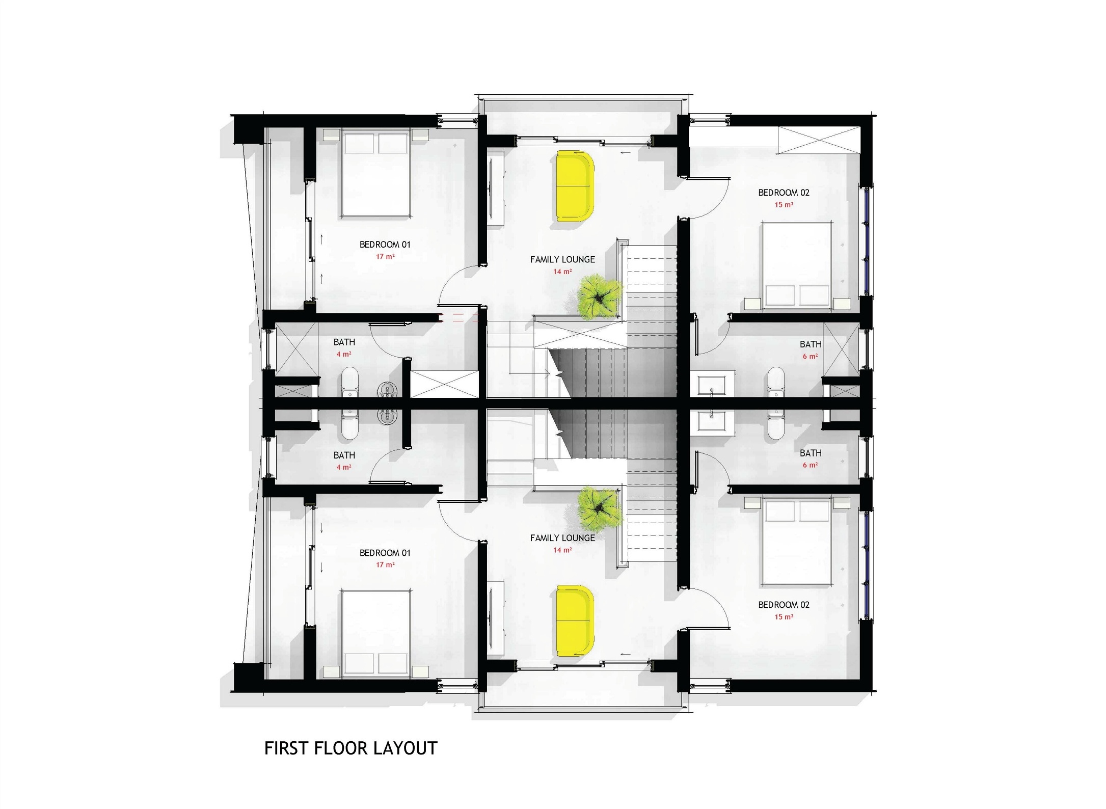 This semi-detached apartment development is crafted to offer modern families the perfect blend of space, privacy, and refined living. Thoughtfully designed with contemporary architecture and functional layouts, each unit provides the comfort of a standalone home while maintaining the elegance and efficiency of an organized estate.